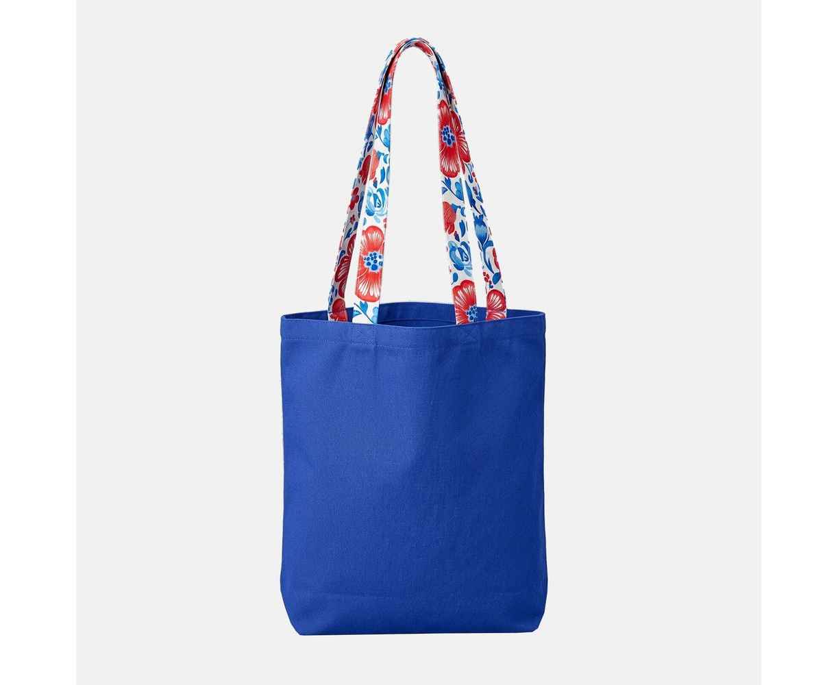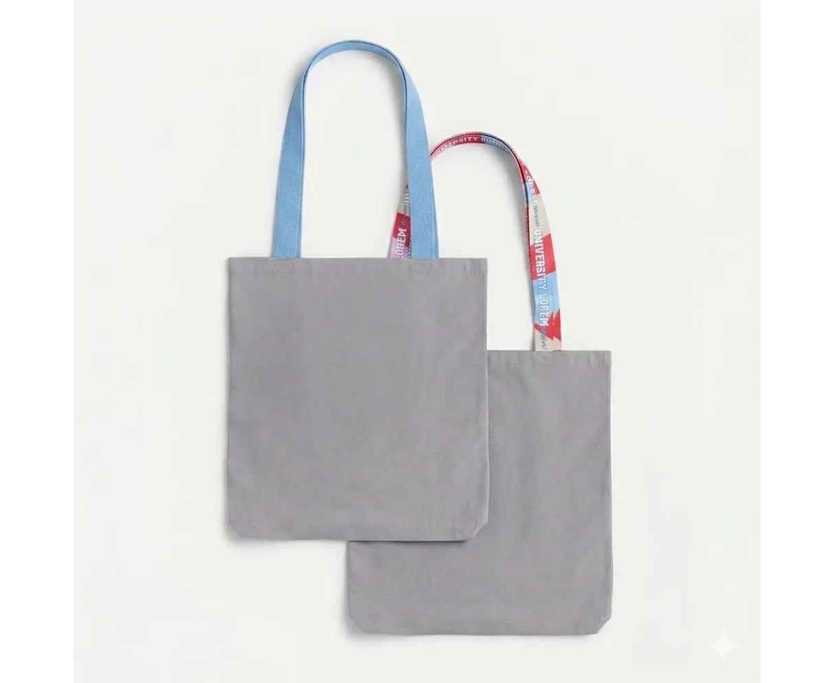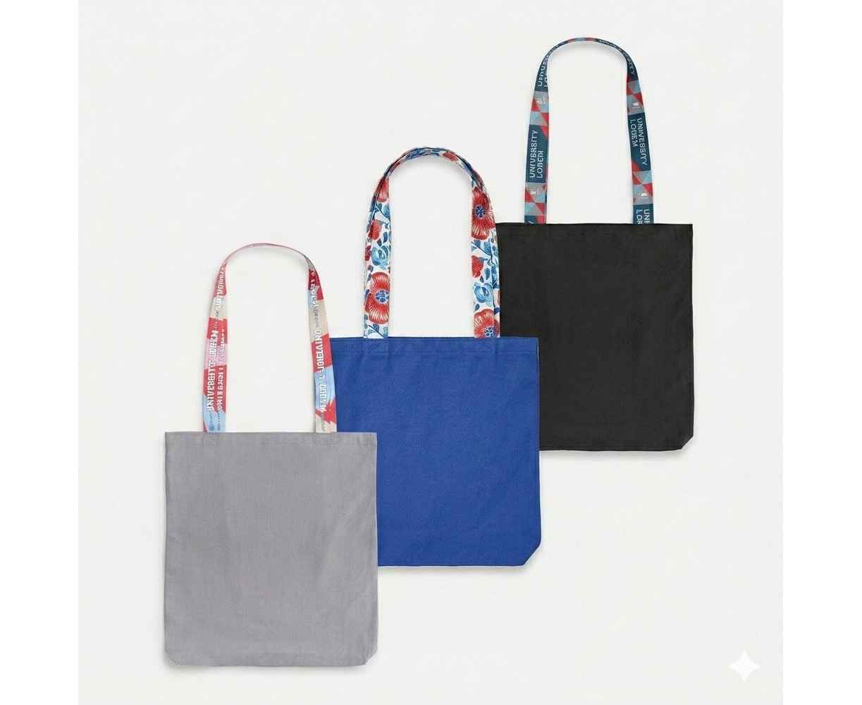 Сумка состоит из прочной базовой основы в трех цветах: классический черный, универсальный серый или глубокий синий — и двух текстильных строп с возможностью полной запечатки. Длину стропы для ручки можно выбирать от 60 см (для ношения на руке) до 90 см. Увеличенная длина ручек позволяет более удобно размещать сумку на плече — или можно оставить хвостик свободным и получить милую деталь и дополнительную полезную площадь для размещения рекламного сообщения или логотипа.