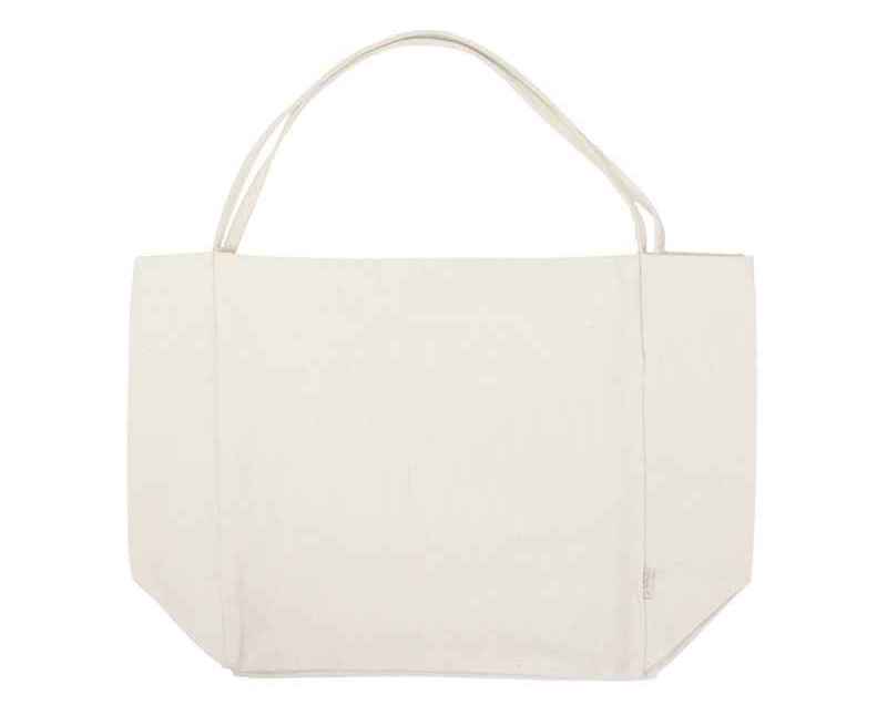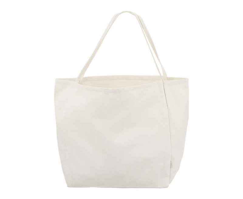 Сумка-шоппер из переработанного хлопка очень вместительна благодаря донной складке. Удобные широко расположенные лямки создают дополнительный комфорт при ношении.