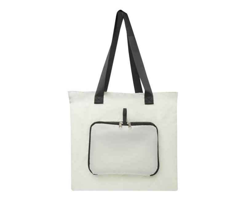 Эта легкая, но прочная эко-сумка, созданная для удобства и практичности, легко складывается в компактный мешочек с плетенной петлей, которую можно повесить или носить с собой. Она идеально подходит для походов по магазинам или в качестве запасной сумки, которая всегда с собой. Имеет просторное основное отделение на молнии, передний карман на молнии и две длинные ручки из качественного гладкого тканого материала. Изготовлен из переработанного полиэстера без содержания ПВХ. Объем: 16 литр. GRS certified recycled polyester.