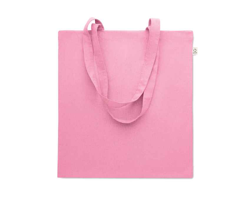 Сумка для покупок из переработанного хлопка (70%) и RPET(30%) с длинными ручками. 140 гр/м². Этот пункт может уменьшиться после впечатывания.