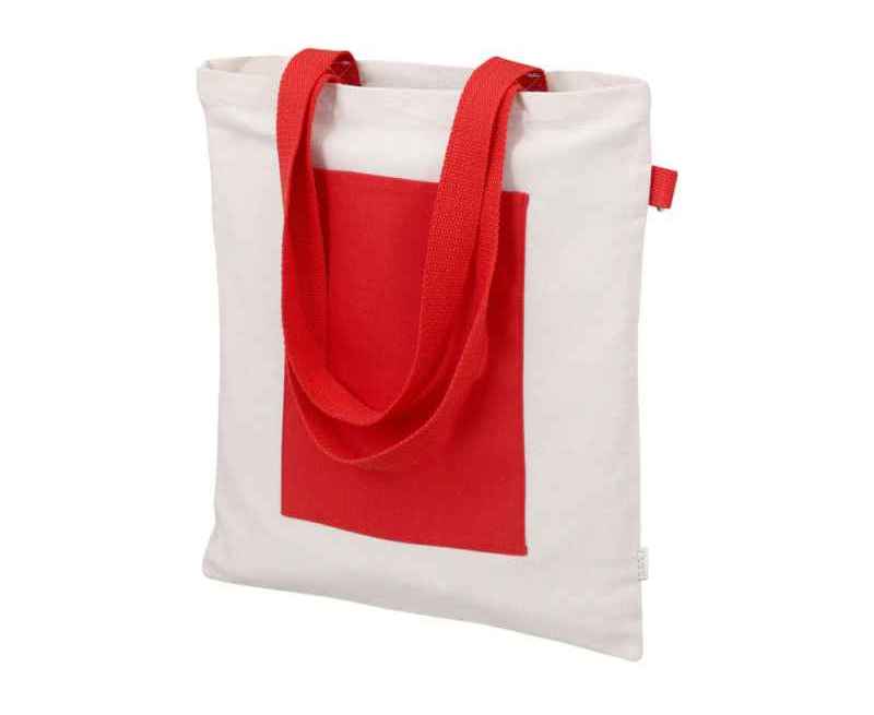 Сумка-шоппер из полностью переработанных материалов с большим контрастным карманом спереди станет стильным аксессуаром для любого случай, как поход в магазин, поездка на пикник или в путешествие. Сбоку предусмотрено д-кольцо для крепления ремувок с вашим логотипом, выполненное из переработанного металла.