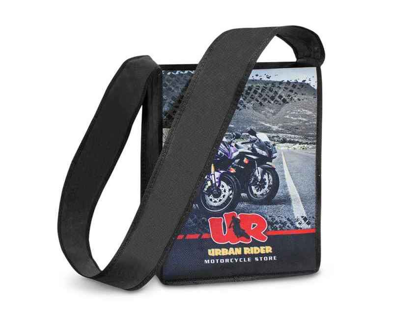 Удобная наплечная сумка-мессенджер с большой вместительностью. Подойдёт как альтернатива классических портфелей для выездных совещаний и других мероприятий. Донная складка позволяет разместить в необходимые документов или другие вещи, при этом позволяя компактно хранить сумку в сложенном виде. Брендирование производится полноцветной печатью в край с обеих сторон. На поверхности сумки можно разместить лого компании или выставки, а также полноразмерный принт любой сложности.