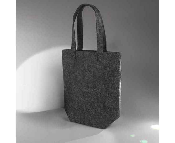 Оригинальная и удобная сумка-шоппер из RPET фетра. Цвет темно-серый. Размер: 40 х 36 см. Плотность 3 мм. Длина ручек 70 см. Виды нанесения: обычный трансфет и DTF.