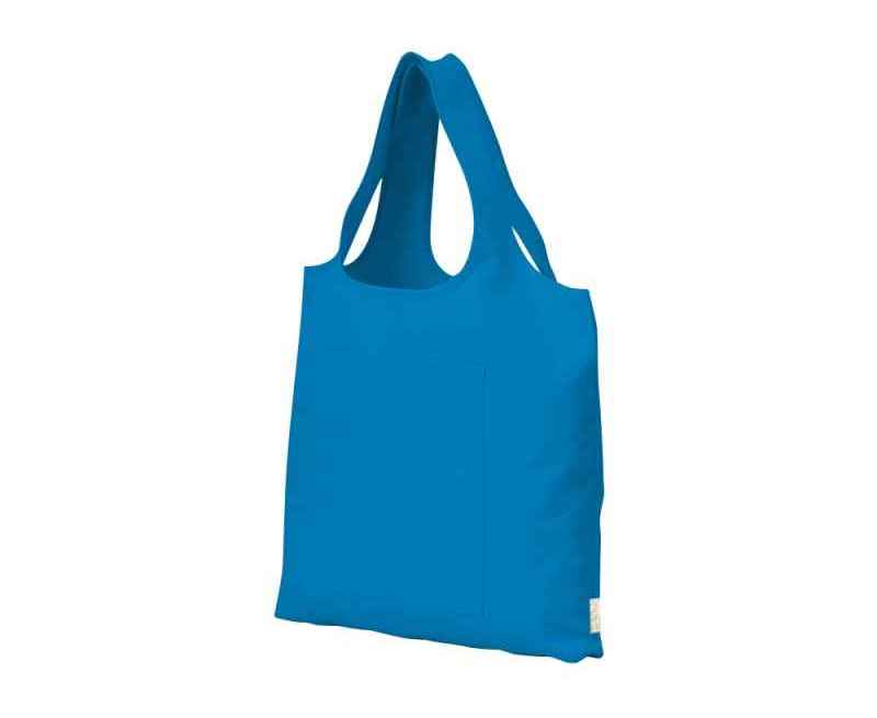 Вместительная сумка-шоппер из очень плотного переработанного хлопка с широкими лямками и большим наружным карманом 20 x 25 см спереди.