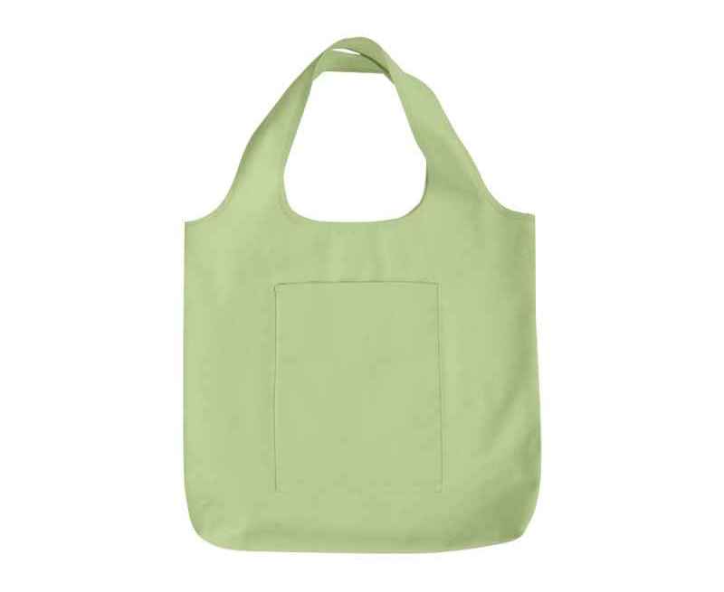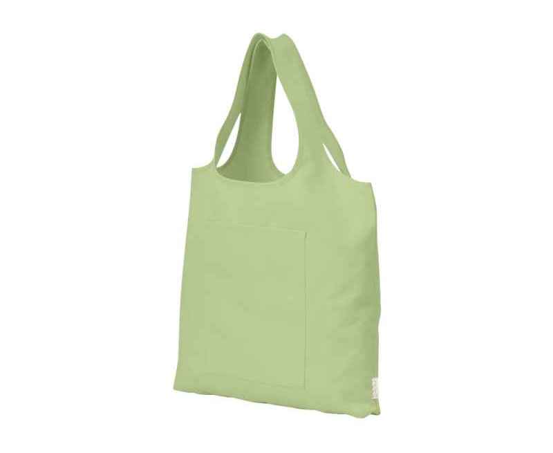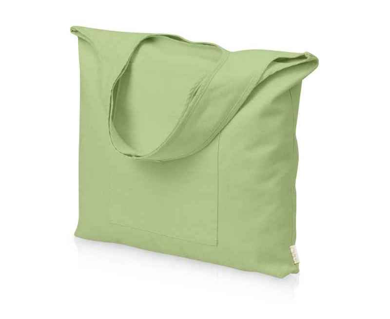 Вместительная сумка-шоппер из очень плотного переработанного хлопка с широкими лямками и большим наружным карманом 20 x 25 см спереди.