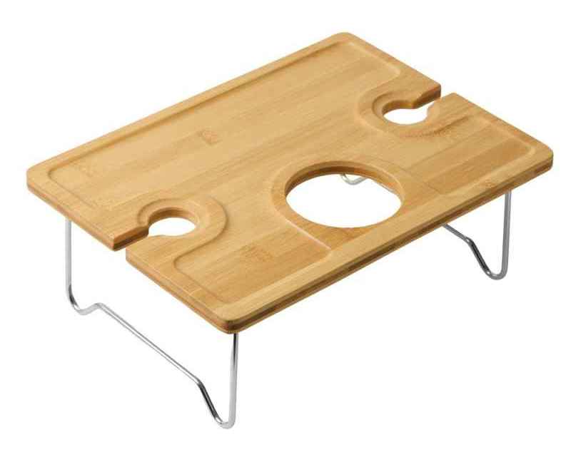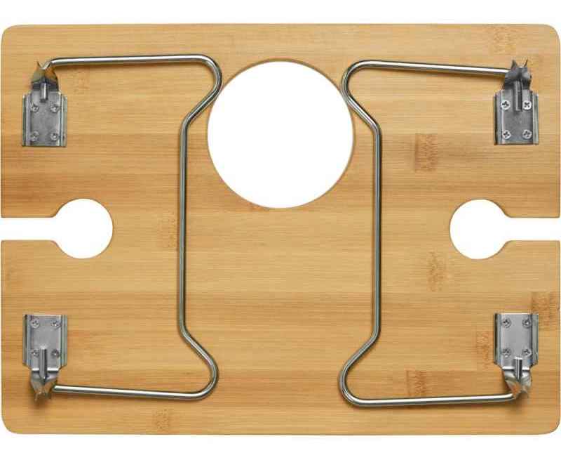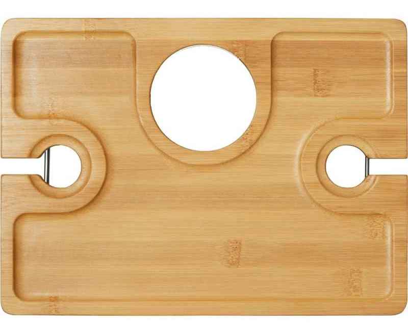 - Надежная фиксация напитков: Два углубления для бокалов и центральное отверстие для бутылки – забудьте о пролитых напитках!