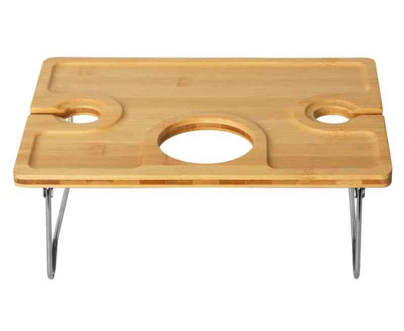 К сумке в наборе идет складной столик из натурального бамбука. Изготовленный из экологически чистого и долговечного бамбука, этот столик не только красив, но и практичен. Его легкие и прочные металлические ножки складываются одним движением, обеспечивая компактное хранение и удобную транспортировку. Возьмите его с собой на пикник, на пляж, на дачу или используйте как стильный приставной столик дома – он везде будет к месту!