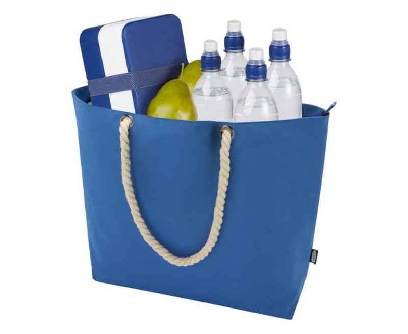 Эко-сумка холодильник Panama изготовлена из переработанного полиэстера, сертифицированного согласно GRS, и имеет большое основное отделение на молнии, а также высококачественную алюминиевую фольгу и ручки из хлопкового шнура. Подходит для различных мероприятий, таких как поход за продуктами или для дня на пляже или в парке. Объем: 23 литр. Выдерживает вес до 10 кг. Не содержит ПВХ. GRS certified recycled polyester.