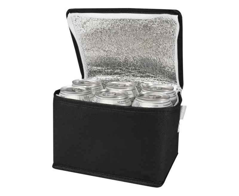Сделанная из прочного и стойкого к разрывам нетканого RPET, сумка-холодильник Spectrum на 6 банок, изготовленная из переработанных материалов, подходит для хранения до 6 банок и оснащена удобной для переноски ручкой из тесьмы. Объем: 4 литр. GRS certified recycled polyester.