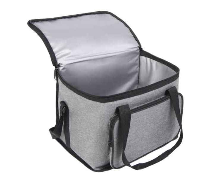 Сумка-холодильник с прочными двойными ручками,лямкой на плечо и внешним карманом на молнии,из прочного меланжевого полиэстра 600D,Внутреннее отделение из,PEVA.Объём:15 литров.