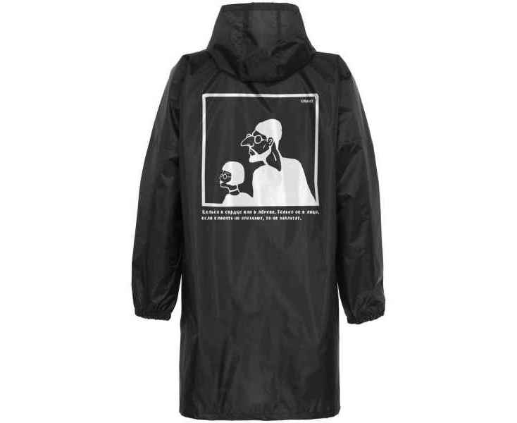 Дизайн принта: Яков Коган.Плащ-дождевик из ткани таффета на молнии с капюшоном. Складывается в мешочек — удобно брать с собой.