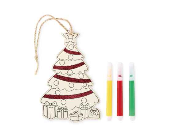 Деревянное новогоднее украшение-раскраска в виде елочки на джутовом ремешке с 3 цветными маркерами.