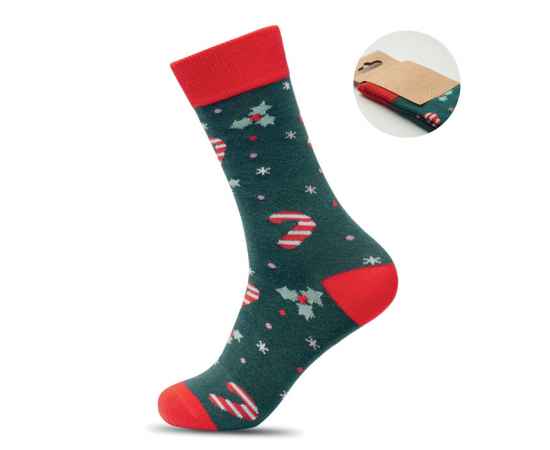 Пара новогодних носков из 75% хлопка, 23% полиэстера RPET и 2% спандекса. Размер L = 43-46.