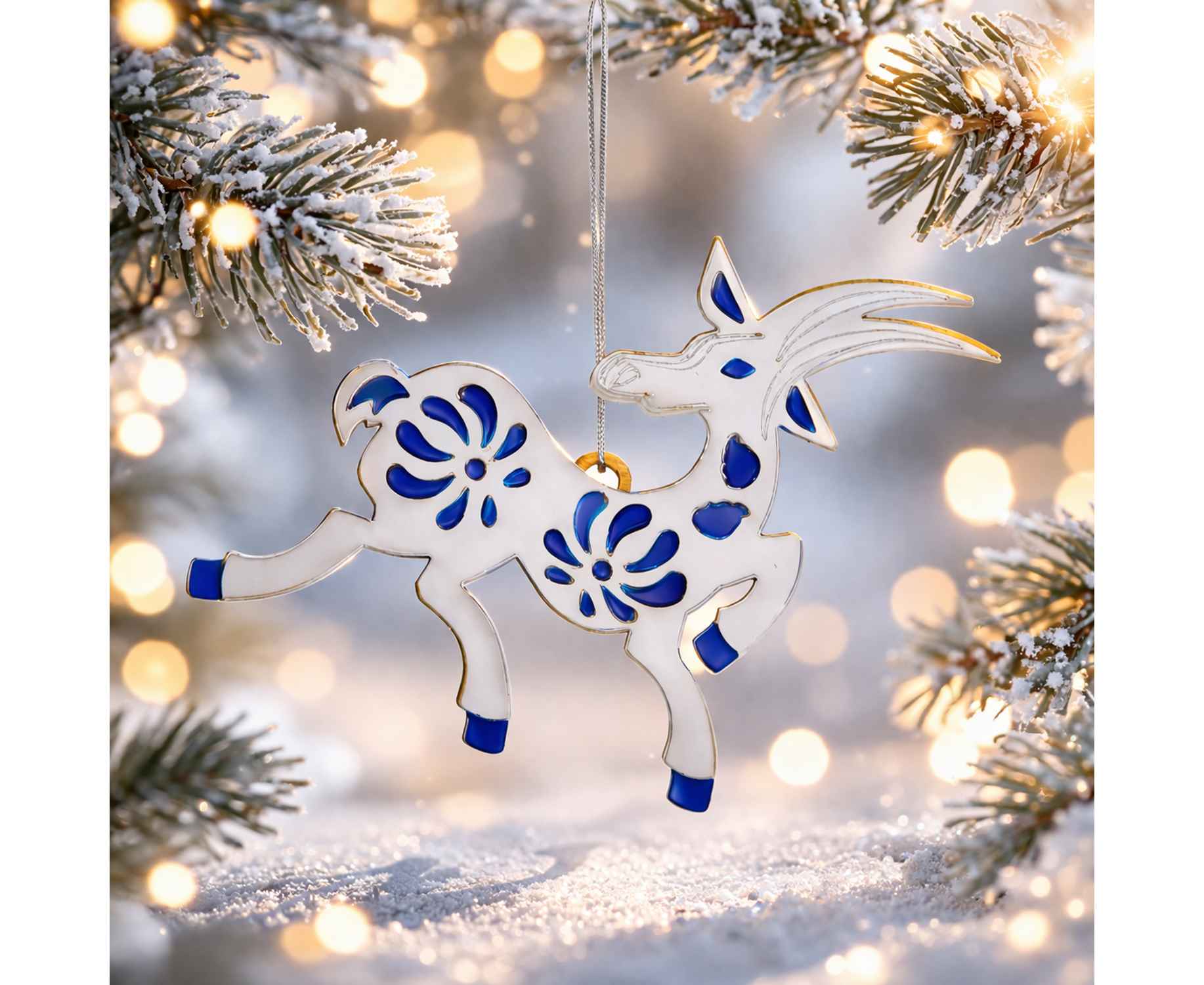 Подробнее о Ёлочная игрушка Коза (серебряный с синим)