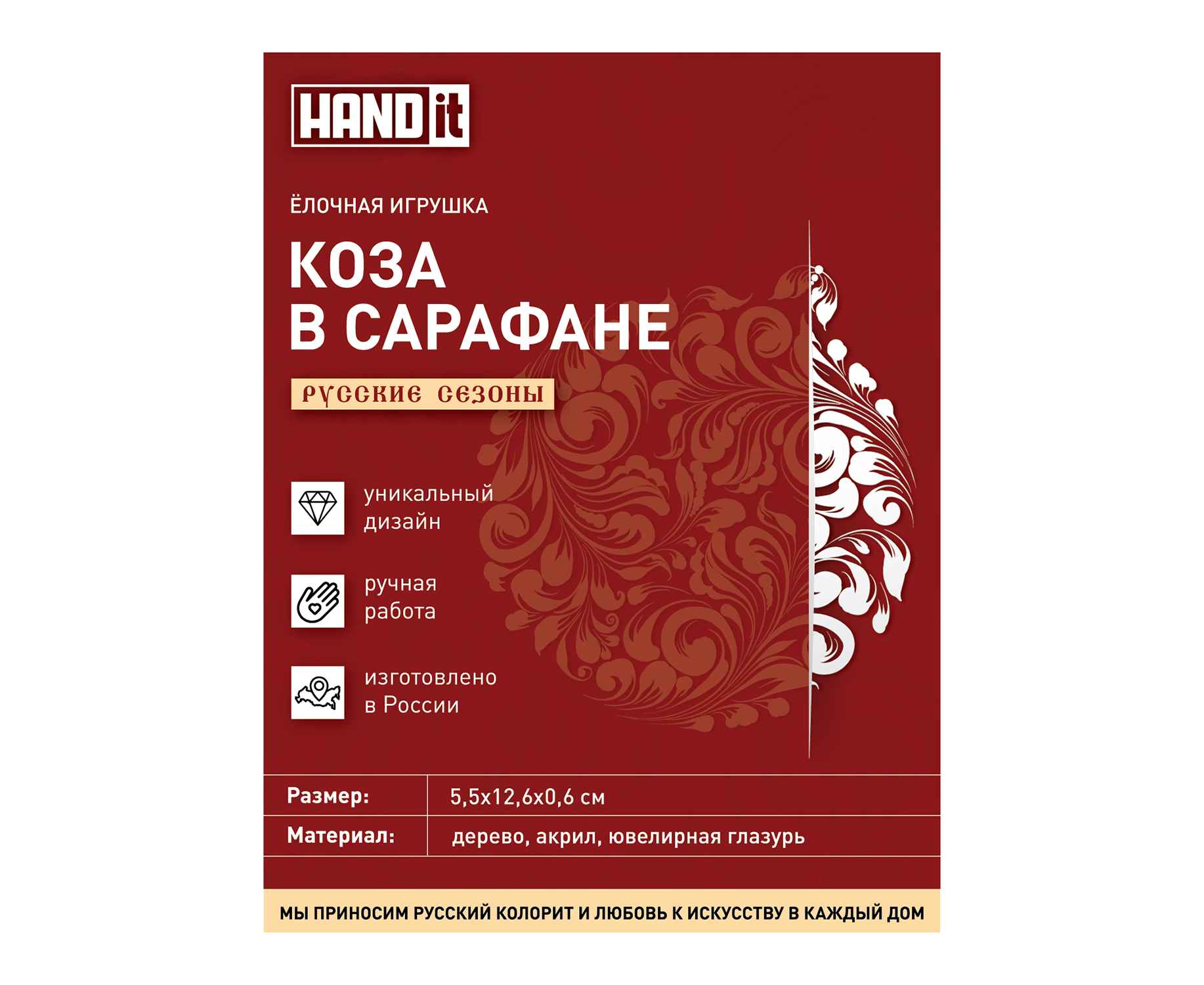 Бренд HANDit — российский бренд изделий из дерева, акрила и ювелирной глазури. В линейке бренда новогодние игрушки, настольные игры и брелки. Каждая игрушка изготовлена вручную.