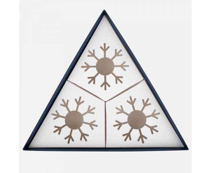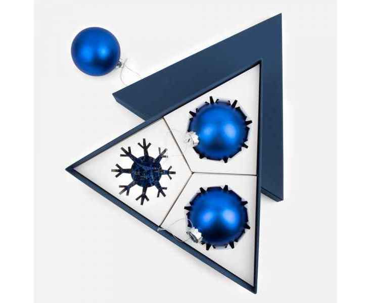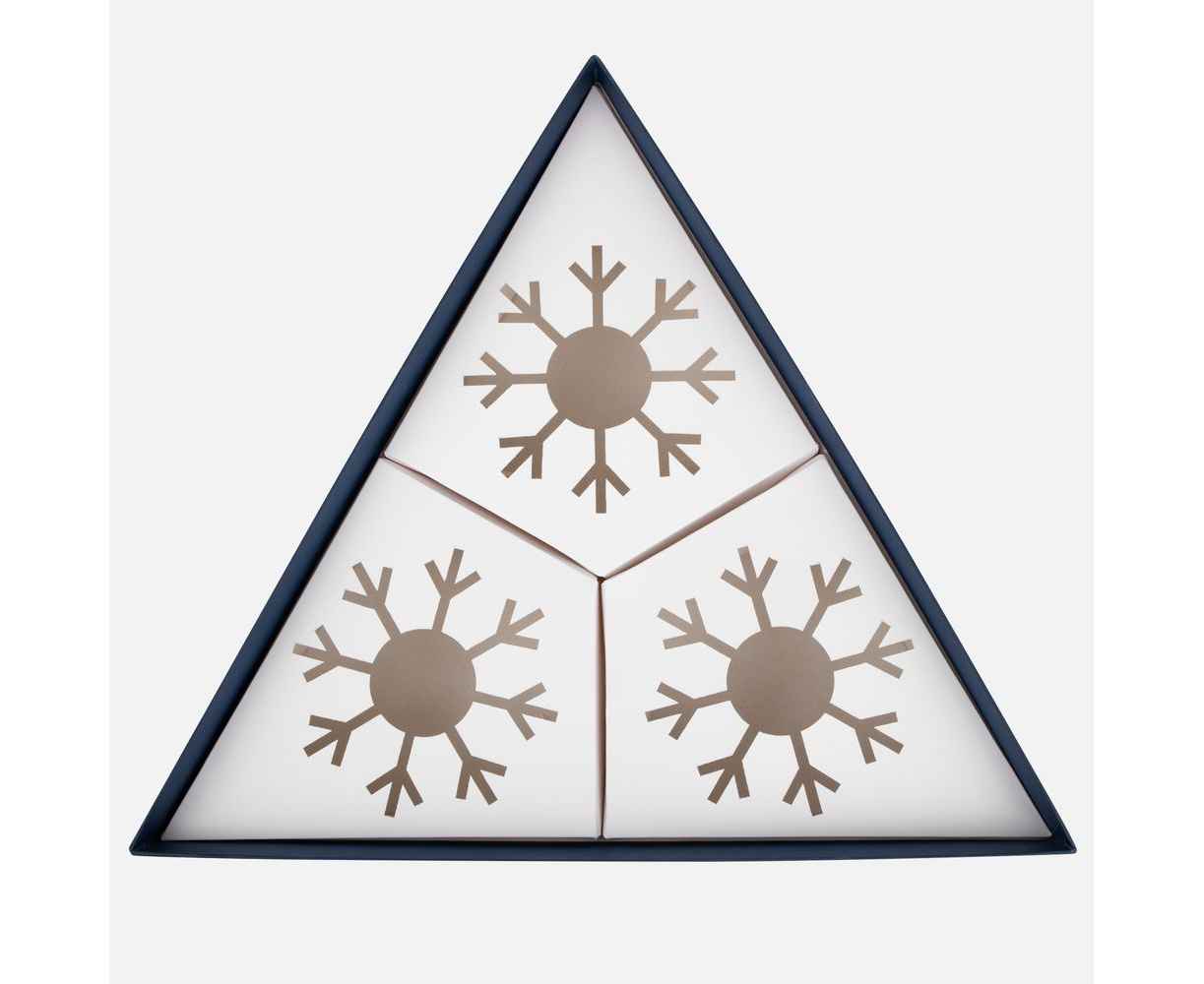 А еще Finery Trio — это маленькое произведение искусства, созданное с вниманием к деталям: шары диаметром 10 см бережно уложены в индивидуальные ложементы с изящным вырезом в форме снежинки, а стильная коробка придает подарку особую торжественность. Нестандартная треугольная форма упаковки подчеркивает оригинальность композиции и делает презент по‑настоящему запоминающимся.