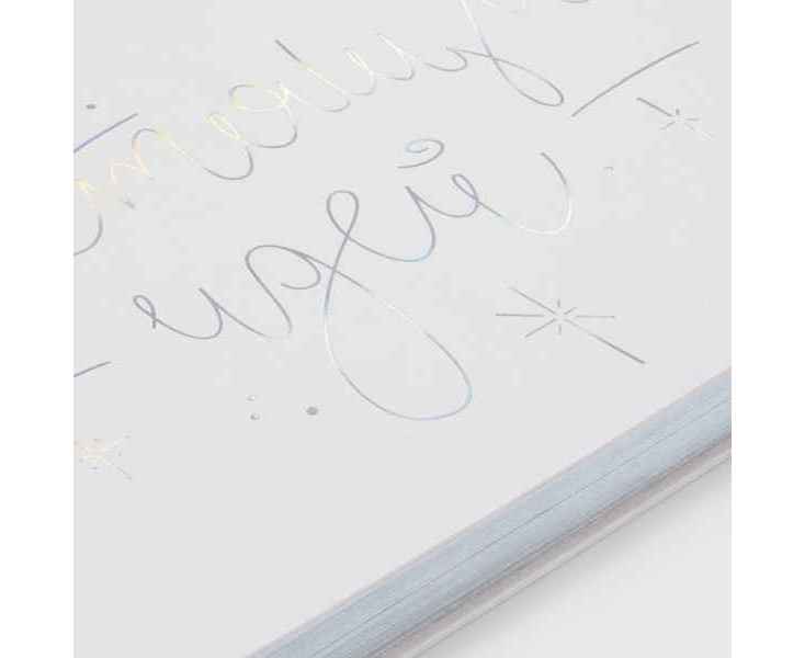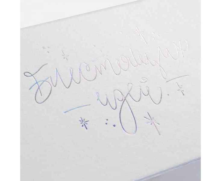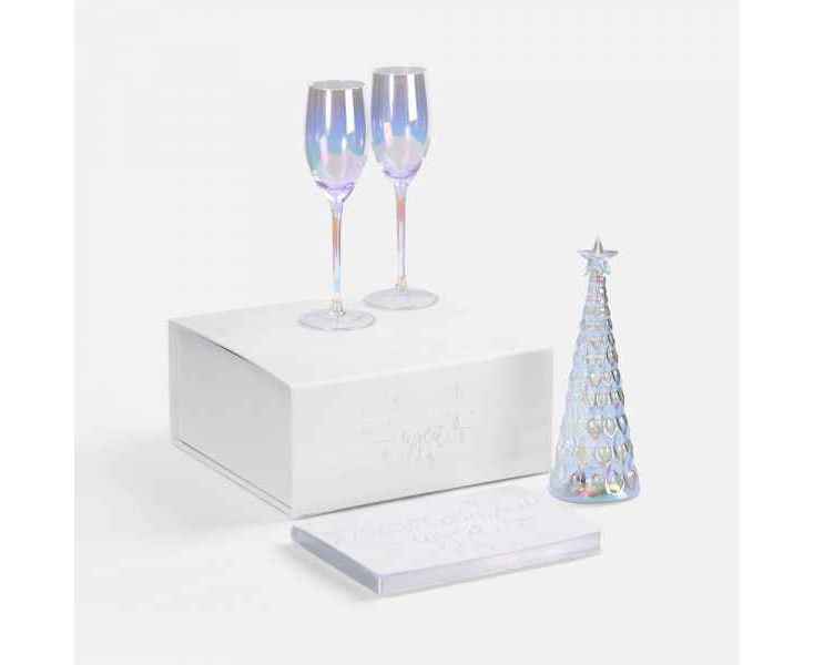 Секрет прост: это особенное перламутровое напыление бокалов и стеклянной елочки-светильника, а еще серебристое голографическое тиснение на самой упаковке и ежедневнике с главным — и всегда актуальным — пожеланием. В такой компании блестящие идеи, без сомнения, будут посещать намного чаще, чем обычно, а весь год будет окрашен в яркие тона, искрящиеся радостью!