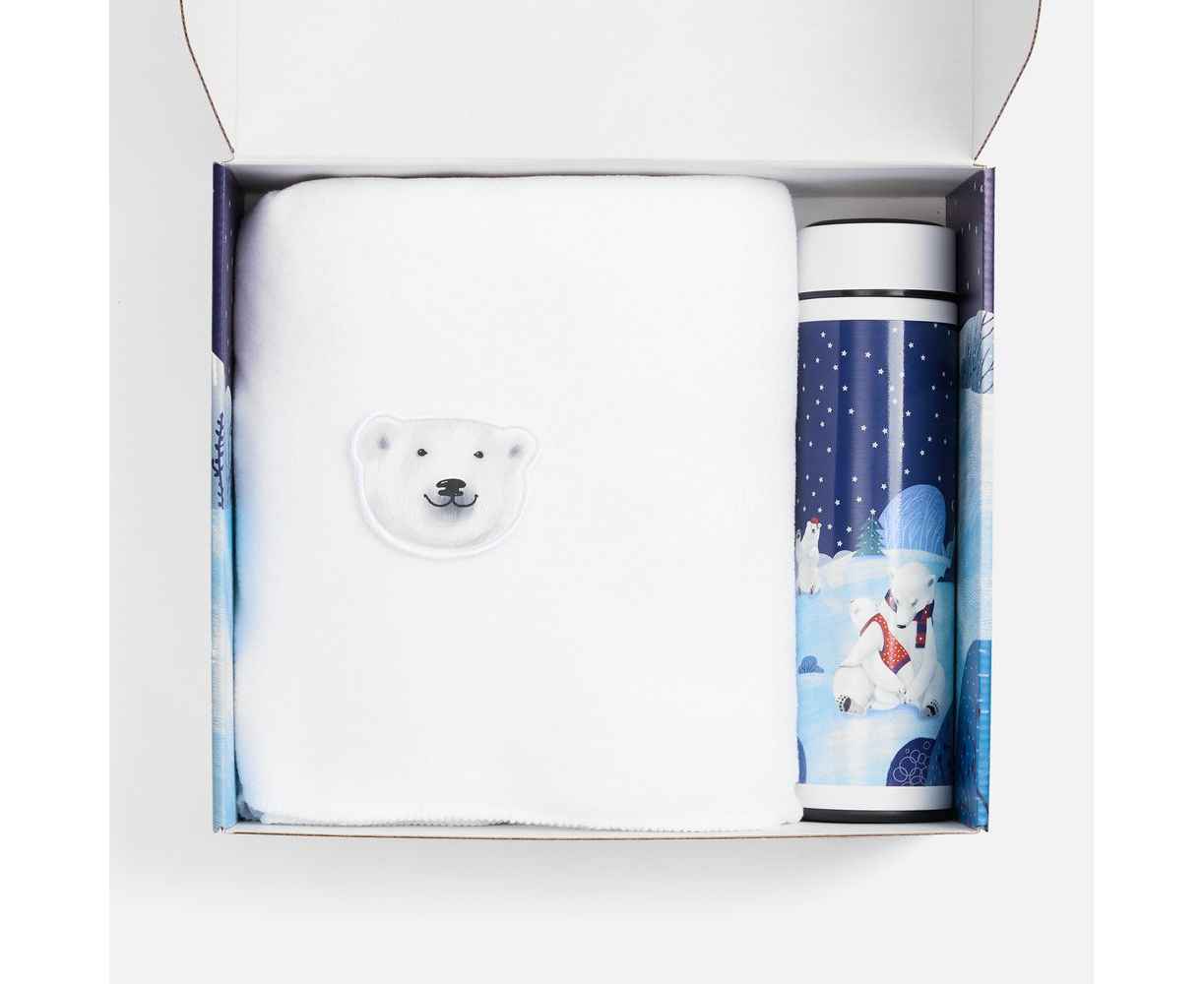 Все составляющие набора украшены милыми изображениями с белыми мишками — одним из главных зимних символов. Это дарит настоящее ощущение праздника — будто маленький очаг тепла, который всегда можно взять с собой.
