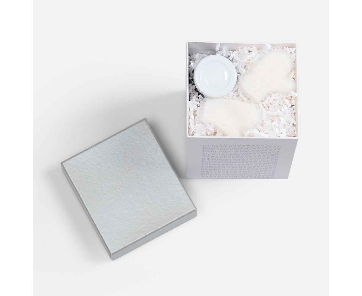 Набор упакован в картонную коробку белого-серебристого цвета.