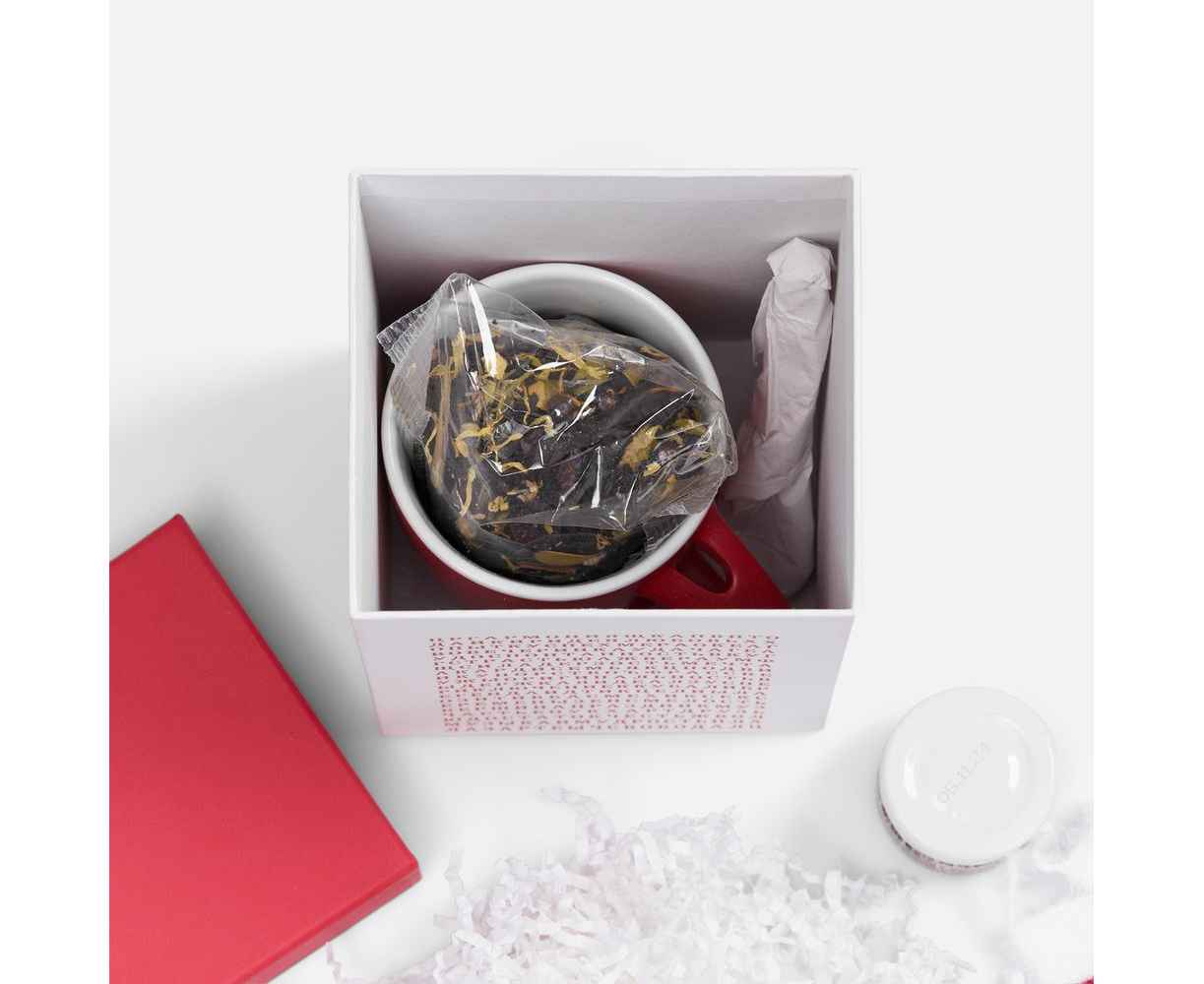 Набор упакован в картонную коробку красно-белого цвета.