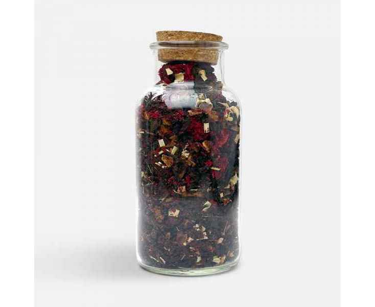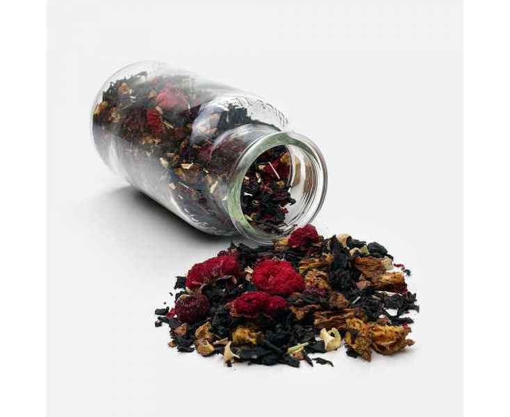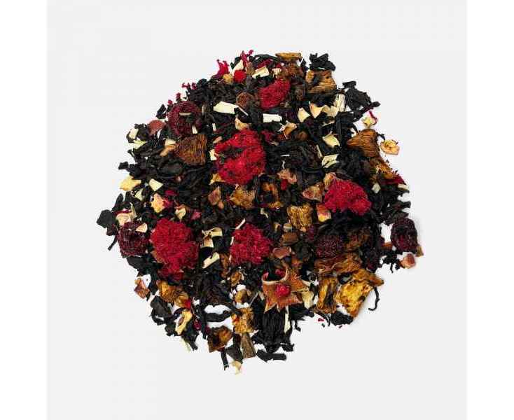 Черный крупнолистовой чай с кусочками ананаса, вишни, лемонграссом, цветками и коркой граната обладает многогранной палитрой вкуса и аромата. В состав чая входят только натуральные ингредиенты, а чайные листья предварительно вымачиваются в соке ананаса: вкус напитка становится особо насыщенным и обогащенным.