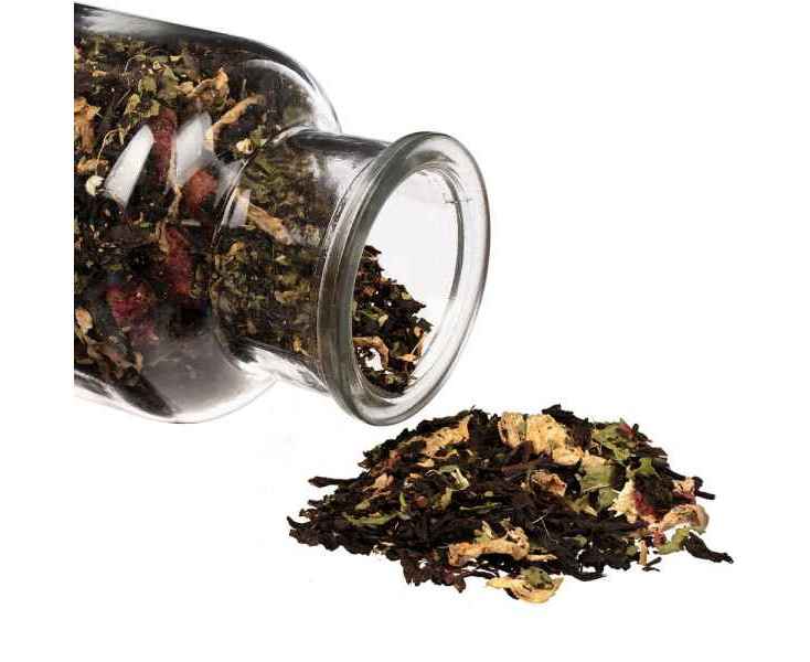 Состав: чай черный с имбирем и соком имбиря (чай черный байховый крупнолистовой, кусочки имбиря, сок имбиря), мята сушеная, малина сублимированная, ароматизатор натуральный «Малина».