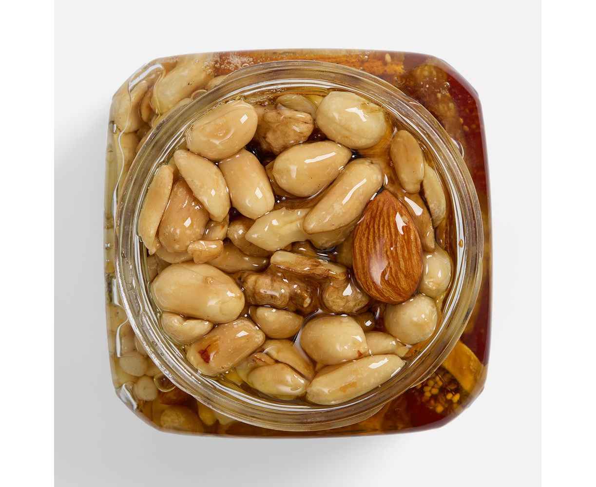 В основе набора Forest Pump —идеальное сочетание двух натуральных лакомств: ароматный медовый десерт с хрустящими орехами, цукатами и полезными семенами составляет прекрасную партию насыщенному черному чаю. В чайном купаже нежная сладость сушеной вишни переплетается с легкой кислинкой малины, а лепестки роз и цветки мальвы добавляют напитку особенные ноты, напоминающие о цветущем летнем саде.