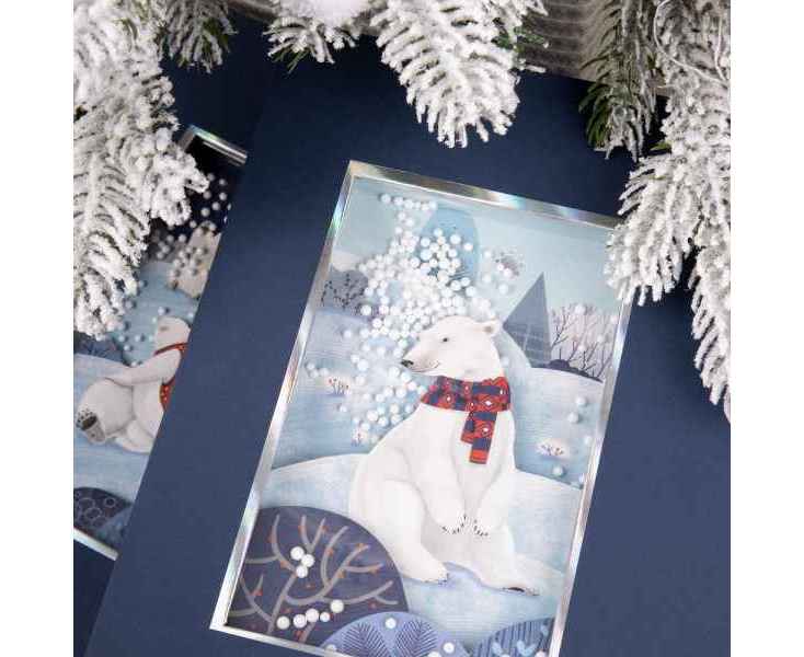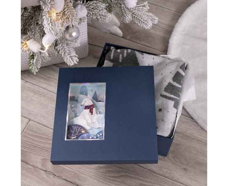 Элегантная коробка из переплетного картона The Blue Bear станет настоящим украшением зимних праздников. Ее главная изюминка — очаровательное окошко с 3D-иллюстрацией, которое словно приглашает в мир новогодних чудес.