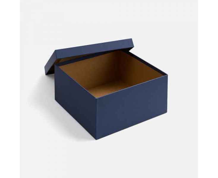 Коробка из переплетного картона, кашированного синей дизайнерской бумагой.