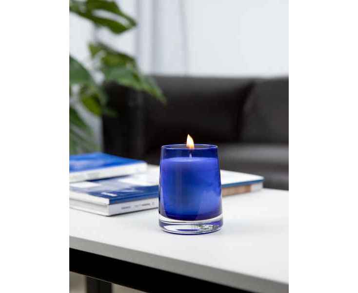 Ароматическая свеча Fragnola в изящном подсвечнике из цветного стекла идеально подходит для создания уютной атмосферы в доме и станет отличным дополнением к любому интерьеру.