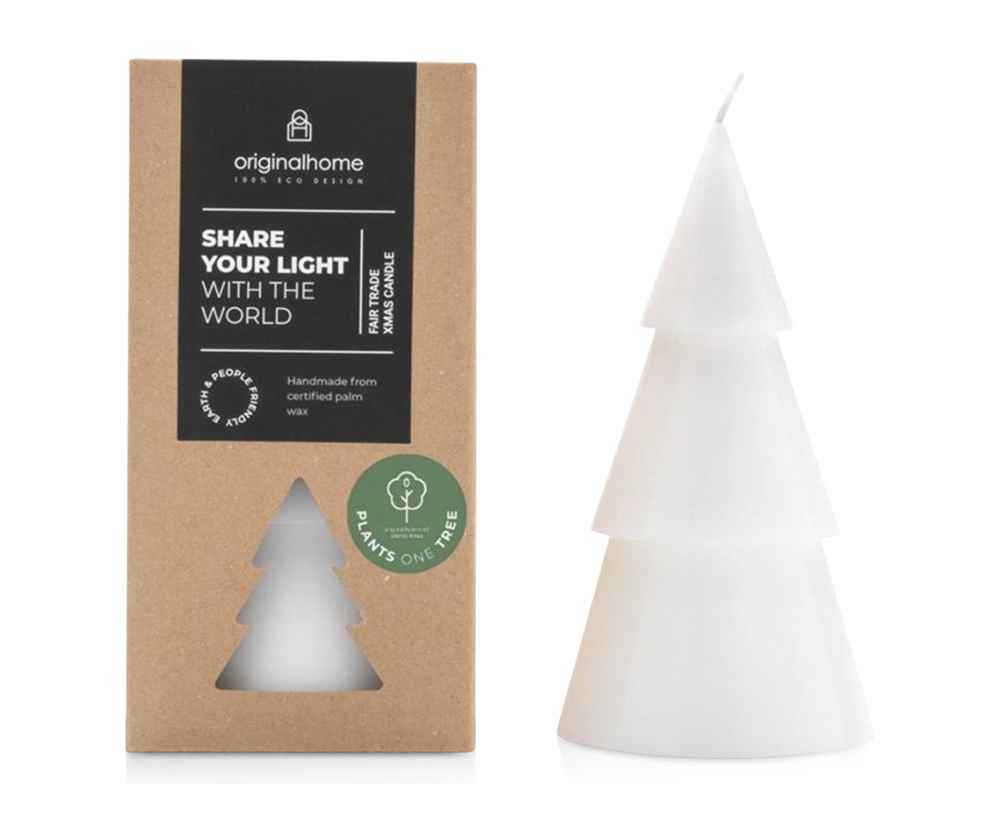 Большая свеча без запаха в виде елки от Originalhome на 100% натуральная и изготовлена вручную из сертифицированного пальмового воска. Это идеальный рождественский подарок для всех, с кем хочется поделиться светом и теплом. Свеча горит примерно 29-32 часа. Воск из пальмовых ядер.