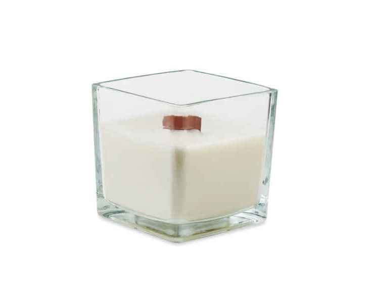 Большая восковая свеча на растительной основе с ароматом ванили 600 г в стеклянном подсвечнике с деревянным фитилем и изображением улья сверху. Время горения 65 часов