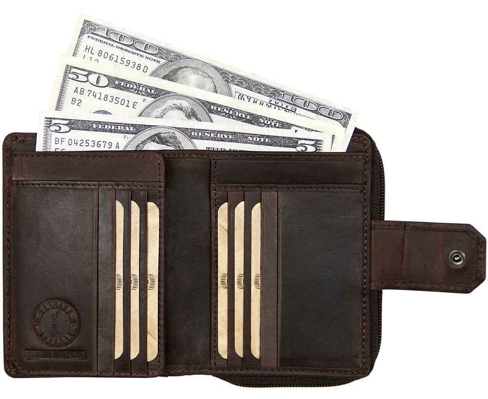 Подробнее о KLONDIKE 1896 Бумажник KLONDIKE DIGGER «Lisa», натуральная кожа в темно-коричневом цвете, 10,5 х 13 x 3 см