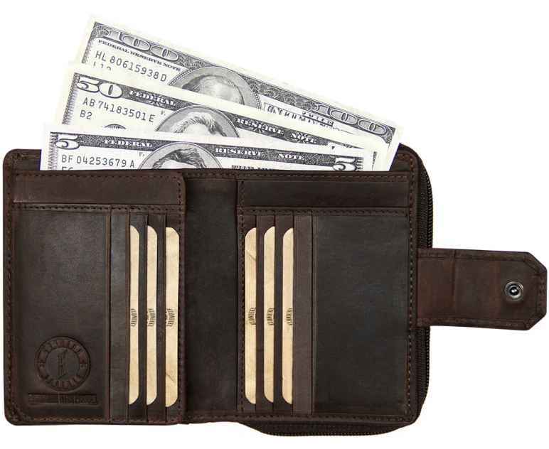 Функциональная организация: 12 отделений для кредитных карт, 1 отделение для купюр, 7 карманов, отделение для мелочи на молнии, сетчатый карман, застежка-кнопка
