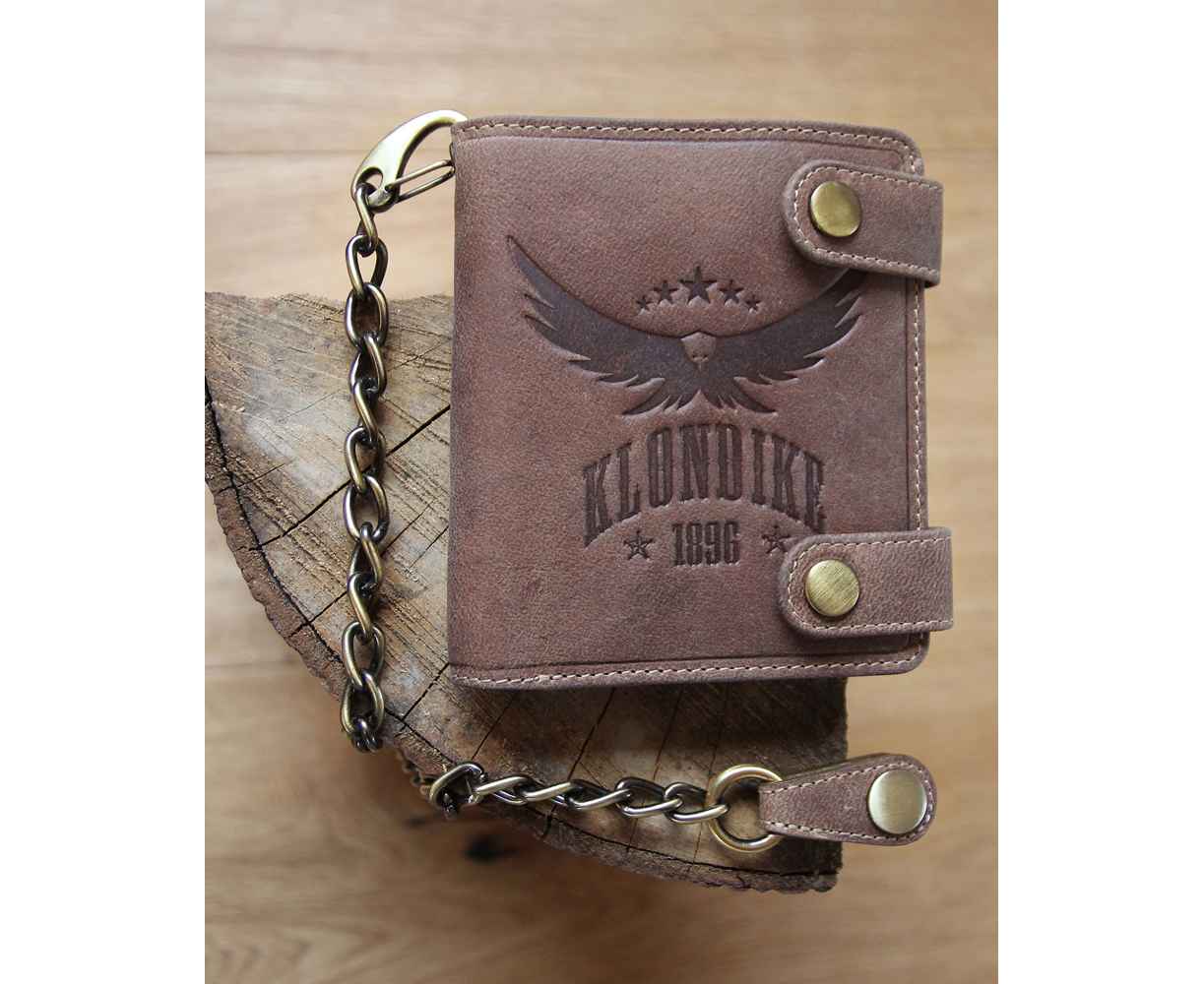 Бумажник с металлической цепочкой KLONDIKE «Tim Eagle», натуральная кожа в светло-коричневом цвете, 11,5 х 12,5 х 3 см