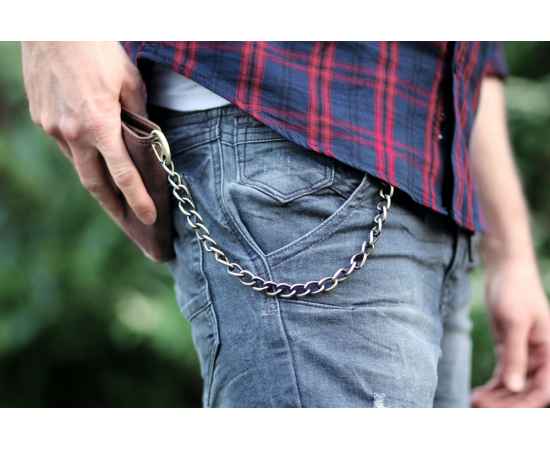 Бумажник с металлической цепочкой KLONDIKE «Wayne Deer», натуральная кожа в светло-коричневом цвете, 10,5 х 12,5 х 2,5 см