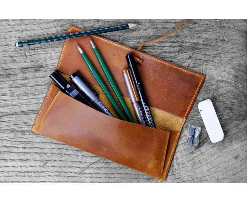 Функциональная организация: 1 вместительное отделение для ручек, карандашей, ластиков, точилок и многого другого, кожаный ремешок для фиксации