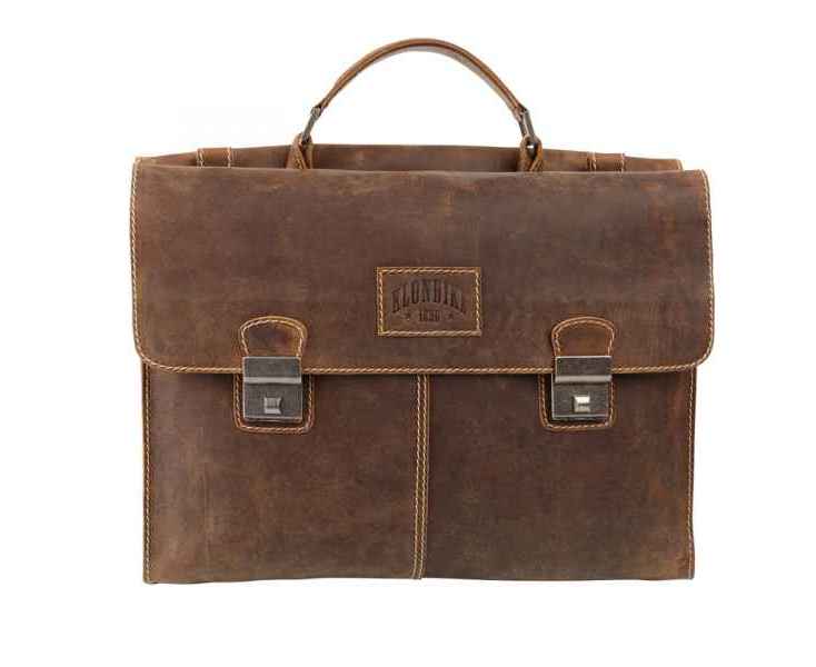 - Этот портфель гарантирует содержимому вашей сумки особую защиту благодаря дополнительной молнии и высококачественным металлическим замкам, спрятанным за декоративными пряжками. Декоративная пряжка украшает внешний вид портфеля. Портфель фирмы «Klondike» – надежный компаньон на вашей стороне.
