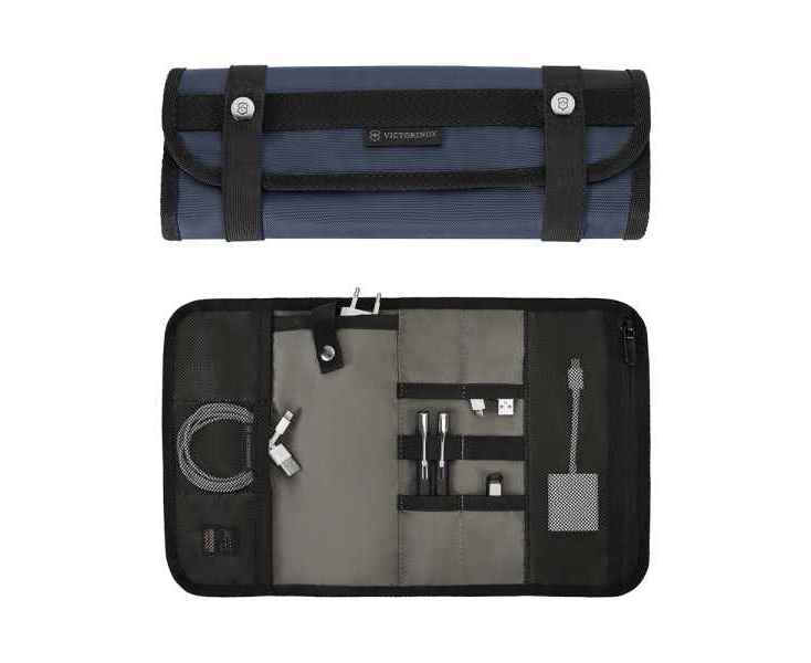 - Съёмный органайзер для зарядных устройств, кабелей, USB-накопителей, авторучек и много другого расположен в удобном месте, при необходимости складывается втрое и может быть использован отдельно от рюкзака.