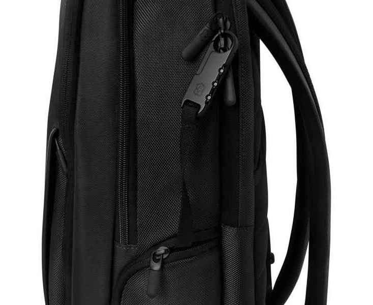 • На внешней стороне размещены два вертикальных передних кармана на молнии, скрытый боковой карман на молнии, верхний карман на молнии, регулируемый по размеру боковой карман и входящий в комплект кодовый замок Travel Sentry® Approved