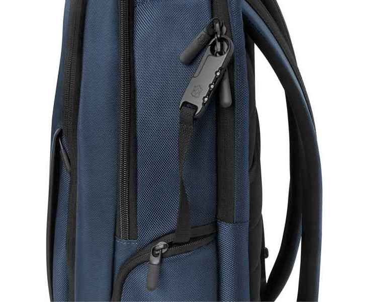 • С внешней стороны расположены два вертикальных передних кармана на молнии, два универсальных боковых кармана на молнии и поставляемый в комплекте кодовый замок Travel Sentry® Approved