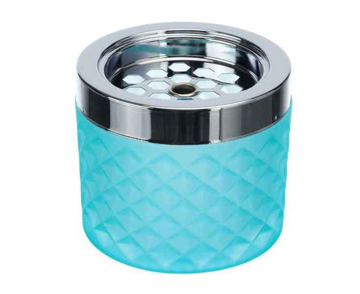 Пепельница S.Quire круглая, сталь, покрытие хром, стекло, бирюзовая, 90 мм