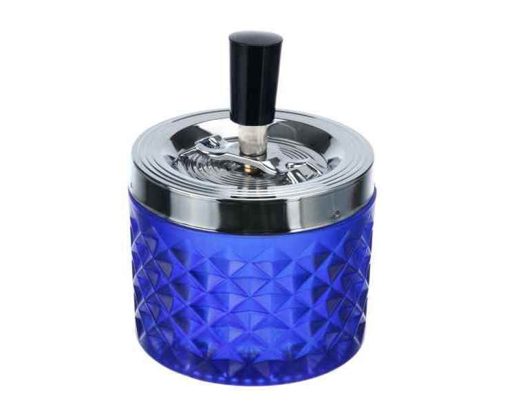 Пепельница S.Quire круглая, сталь, покрытие хром, стекло, синяя, 90 мм