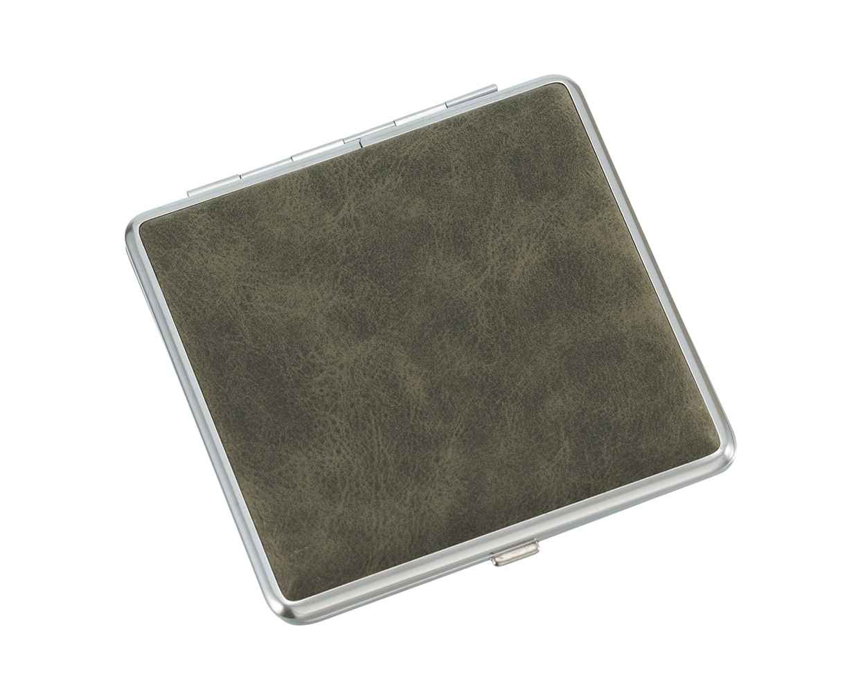 Портсигар S.Quire, нержавеющая сталь, искусственная кожа, хаки, 9,6х9,3х1,9 см