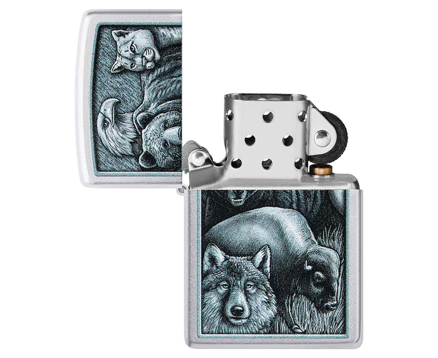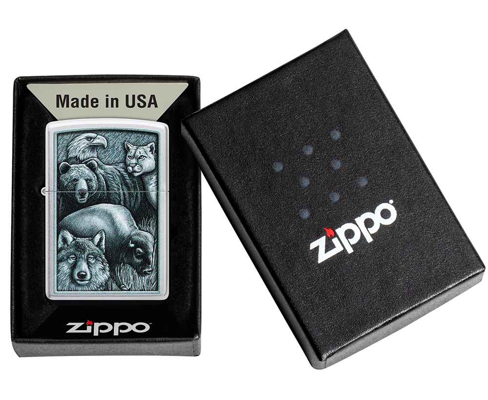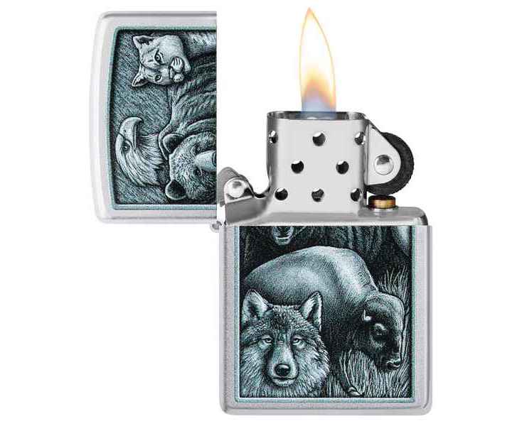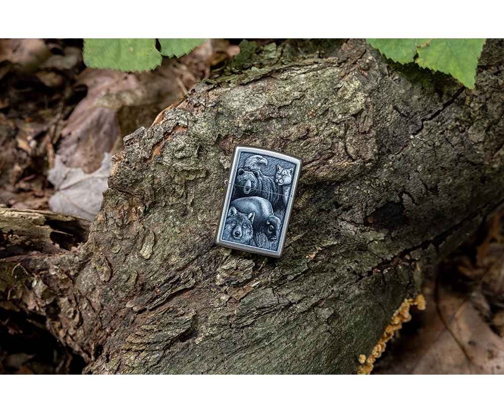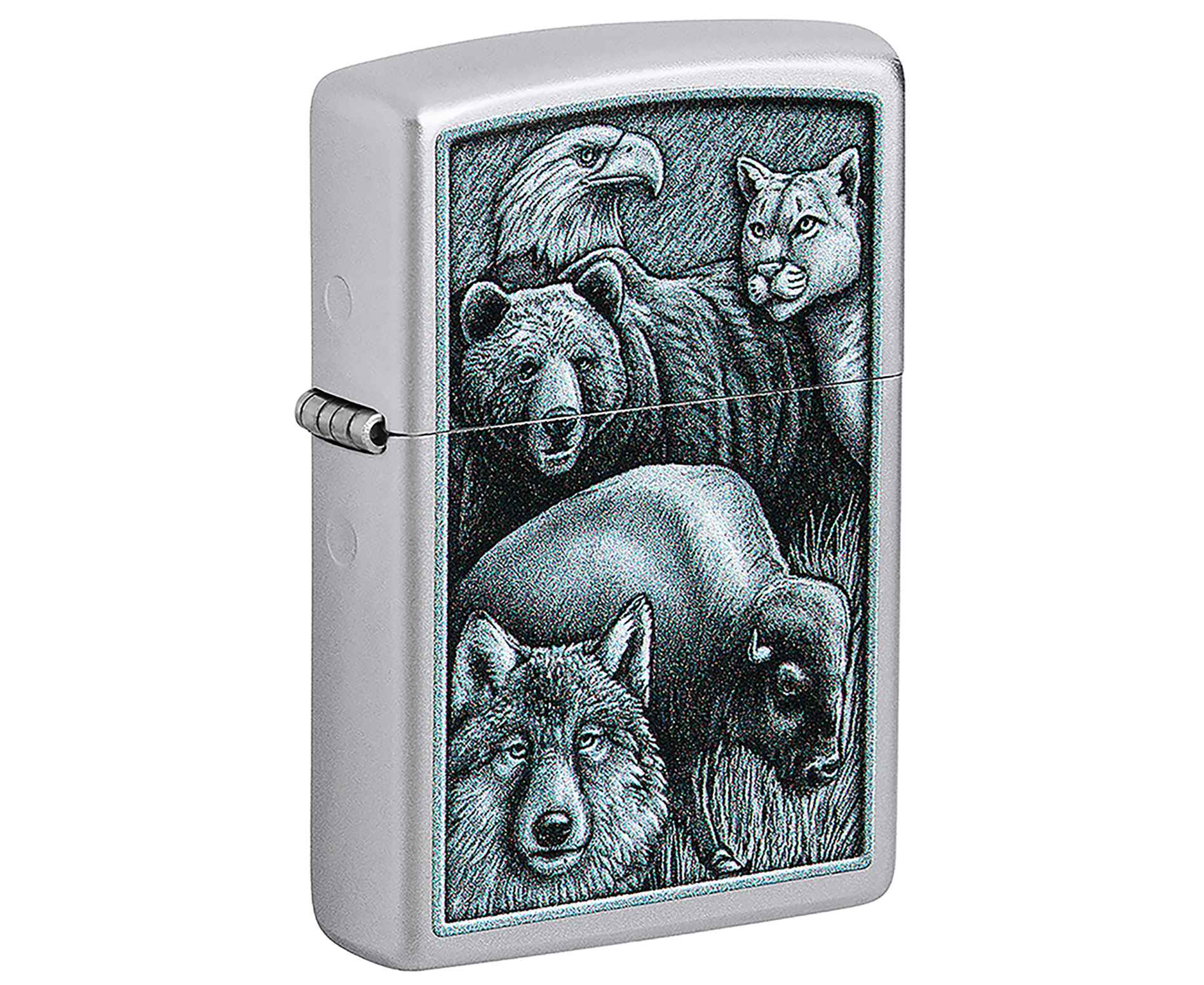 Некоторые из самых могущественных созданий Матери-природы собрались на этой классической зажигалке Satin Chrome в монохромном цветном изображении.