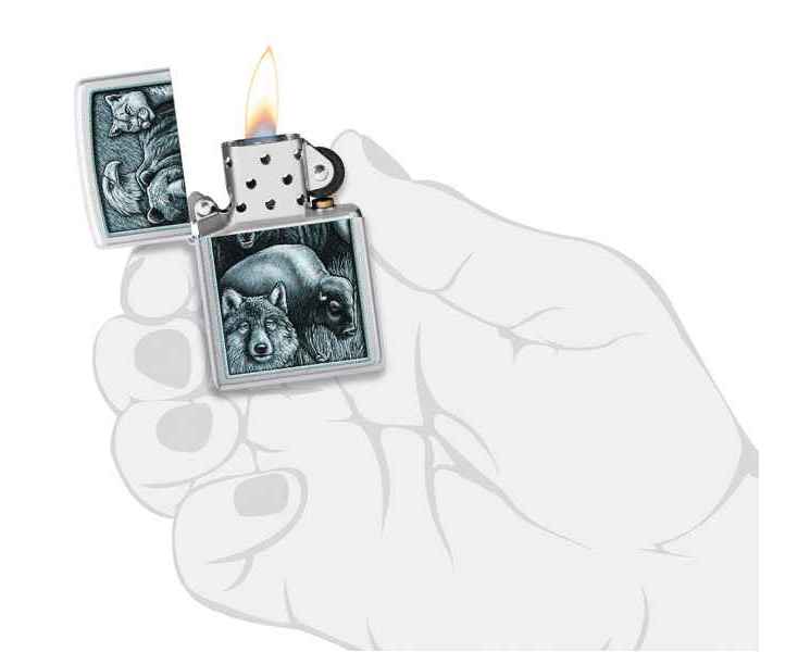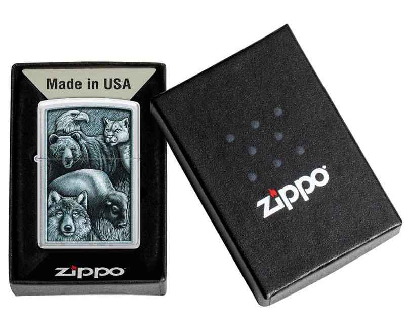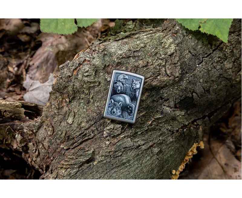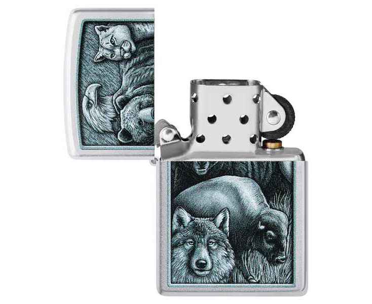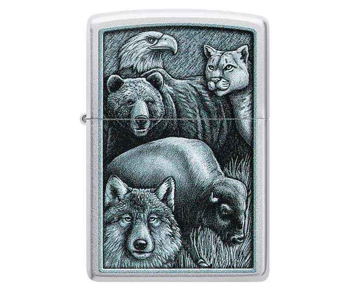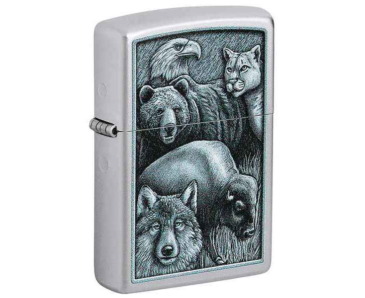 Зажигалка ZIPPO Animal Kingdom Design с покрытием Satin Chrome, латунь/сталь, серебристая, матовая, 38x13x57 мм