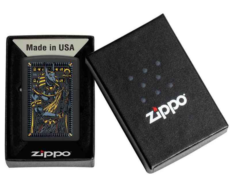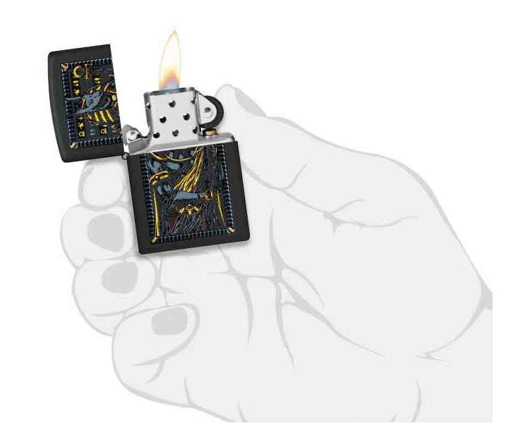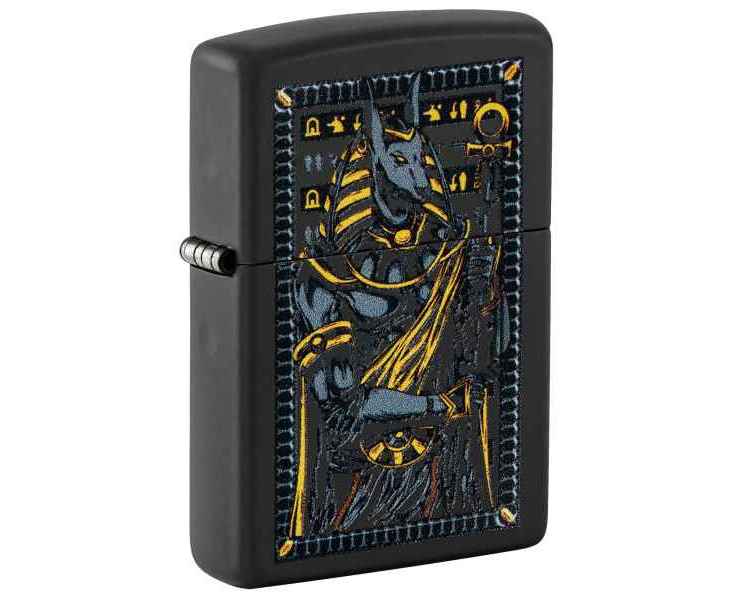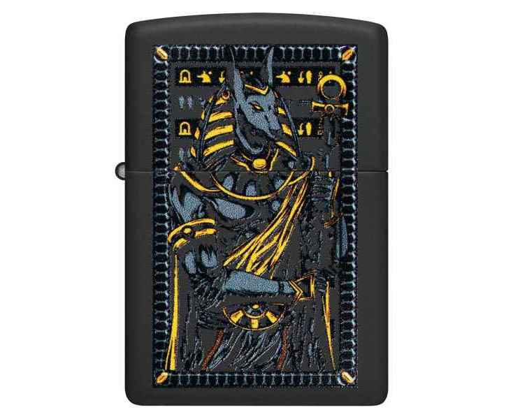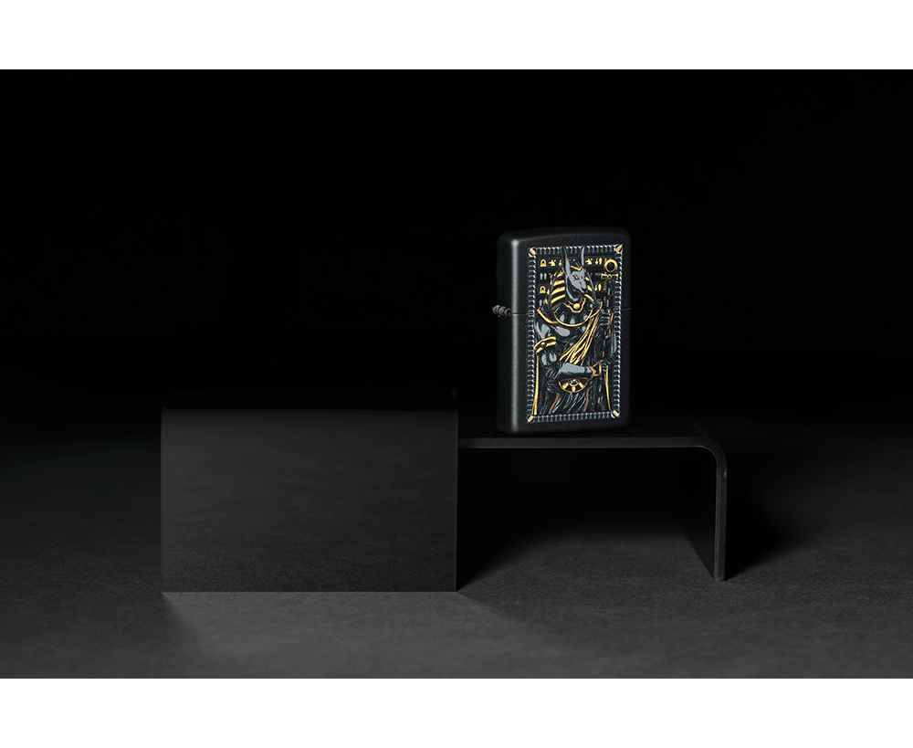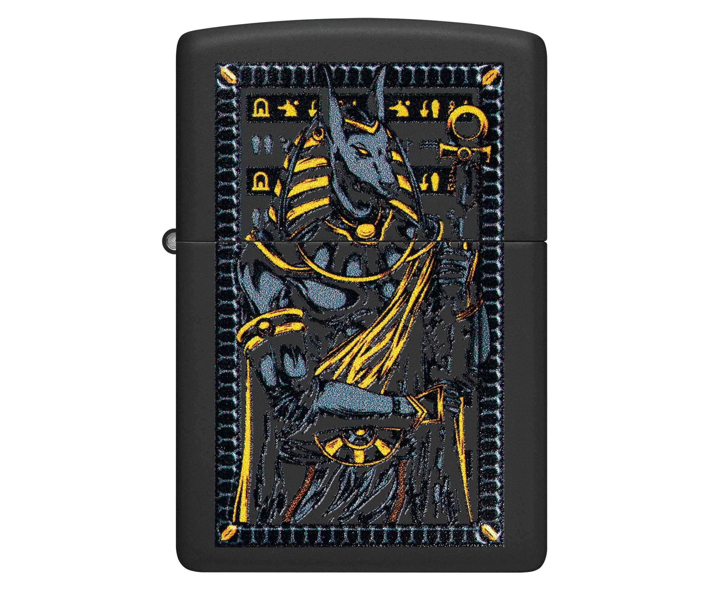Известный как покровитель могил и загробной жизни, египетский бог Анубис изображен на этой классической черной матовой зажигалке в смелом и загадочном дизайне.