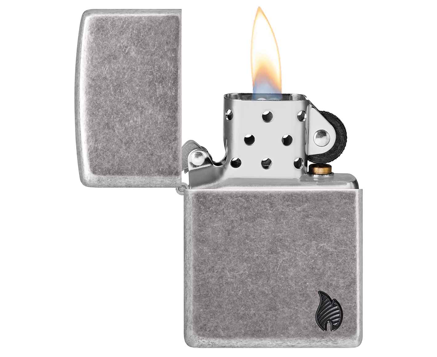 Зажигалка ZIPPO Armor® Flame c покрытием Antique Silver, латунь/сталь, серебристая, 38x13x57 мм