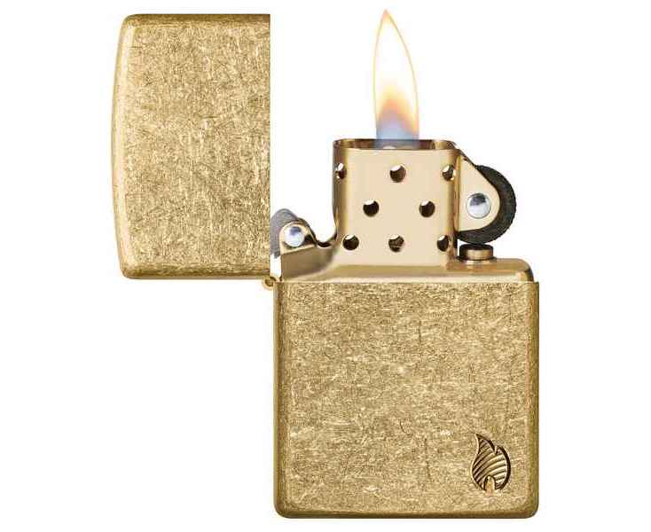 Зажигалка ZIPPO Armor® Flame c покрытием Tumbled Brass, латунь/сталь, золотистая, 38x13x57 мм