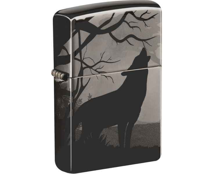 Зажигалка ZIPPO Wolves Design с покрытием Black Ice®, латунь/сталь, чёрная, глянцевая, 38x13x57 мм
